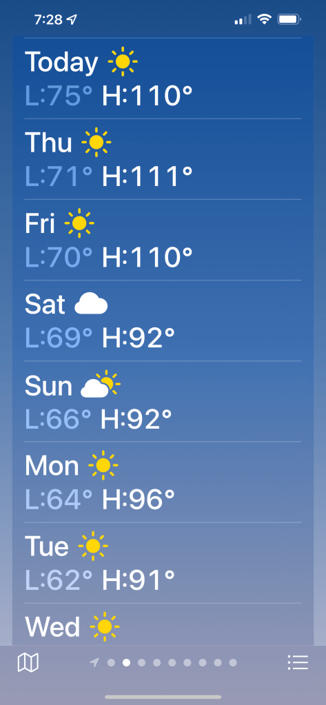 And Thursday temp is 111… I have a thing with repeating numbers and 111 just has meaning