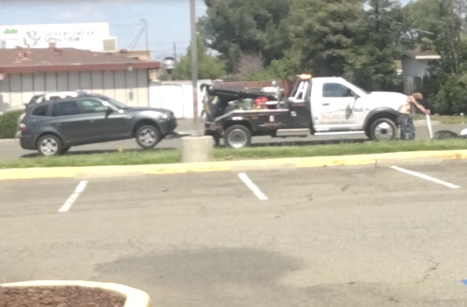 They pulled car off the busy street and are strapping it down… there’s that homeless guy with just the jeans lol